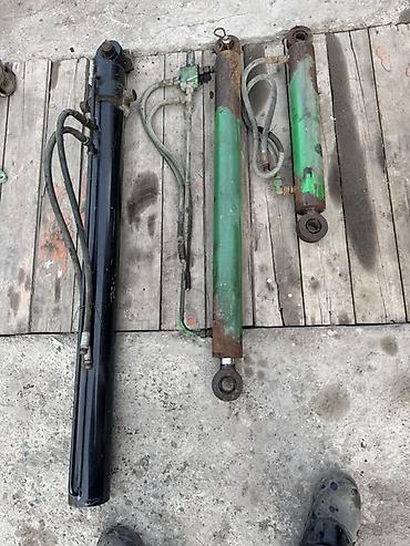- Гидроцилиндры разной длины (3 шт. на фото) с резьбовыми портами и шарнирными проушинами.