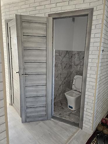 - Санузел: современная керамика, плитка «под мрамор» на полу и стенах, новая дверь и порог.