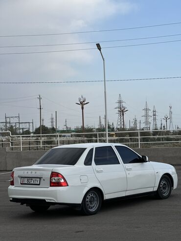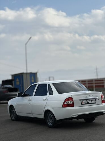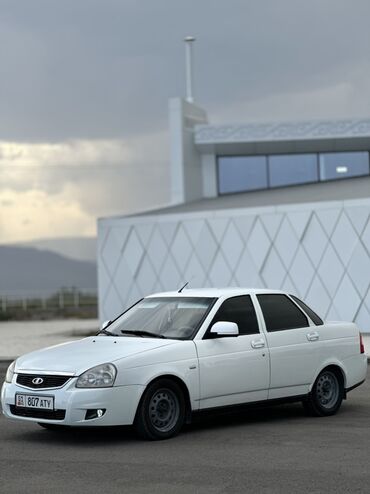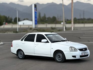 КыргызстанLADA Priora седан, белый цвет. Четырёхдверный кузов, тонировка по кругу, окрашенные в цвет кузова зеркала и ручки, антенна «акулий плавник». Передняя оптика с линзами, противотуманные фары, задние фонари рестайлинг. Стальные диски на штатной резине, брызговики. Чёрные молдинги порогов, заводская решётка радиатора с эмблемой LADA. Номерные знаки KG.