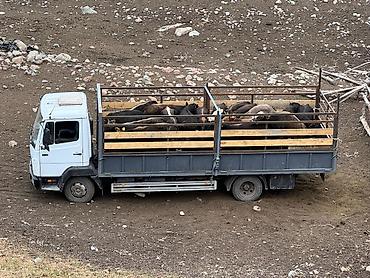 Грузовой бортовой автомобиль с высокой металлической платформой. - Кабина синего цвета, двухдверная, с наружными зеркалами на кронштейнах. - Усиленная металлическая будка/кузов с высокими сетчатым...