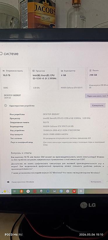 - Накопитель: 298 ГБ (установлен системный диск)