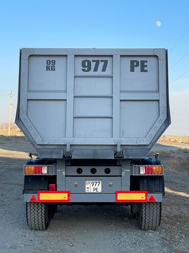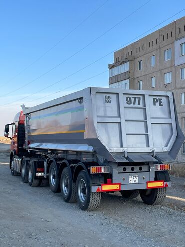 Полуприцеп-самосвал (трехосный) Описание: - Кузов: стальной/металлический, прямоугольный, усиленные борта, задний откидной борт. - Тип разгрузки: задняя, гидроцилиндр фронтального подъема. - Шасси...