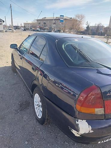 Mitsubishi Lancer (седан), темно‑синий цвет. Передний привод. Кузов с аэродинамическим обвесом по кругу (передний спойлер‑юбка, пороги), наклейки «Samurai». Легкосплавные диски белого цвета, красные тормозные суппорты видны через спицы. Тонированные стекла, ветровики на дверях. Антенна на крыше.