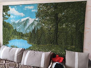 - Большой тканый ковер для стены с изображением гор, озера и леса.