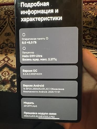 - ОС: Xiaomi HyperOS 3.0.4.0 на базе Android 16 BP2A (установлены актуальные обновления безопасности до 01.11.2025).