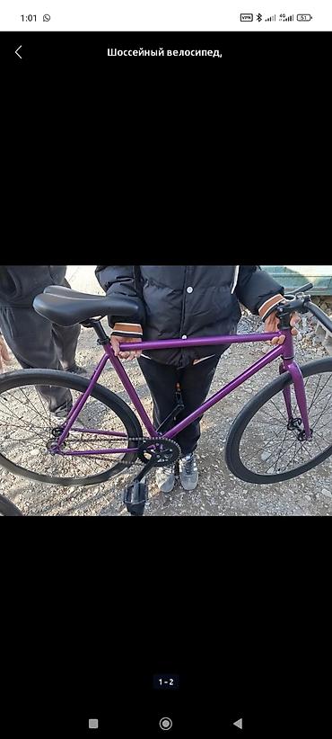 - Рама: стальная, классическая геометрия трек/шоссе, цвет фиолетовый (глянцевый).