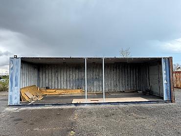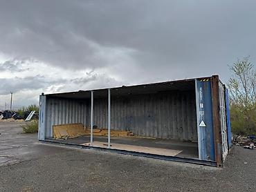 На фото — фактический контейнер, с частично подготовленной внутренней площадкой и усиливающими стойками.