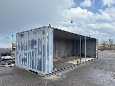 - Подходит под: открытую мастерскую, склад с фронтальной погрузкой, навес для техники и материалов, торговую точку/павильон после доработки, гараж-бокс, модуль для стройплощадки.
