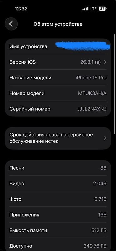 - Память: 512 ГБ, доступно 349,76 ГБ