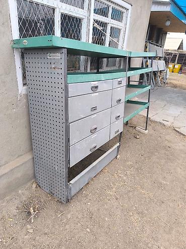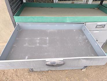 - Столешница и полки с бортиками зеленого цвета, удобны для размещения инструмента и расходников.