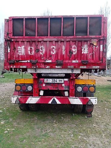 - Полуприцеп красного цвета, бортовой/самосвальный тип с высокой грузовой платформой, многосекционные откидные борта.