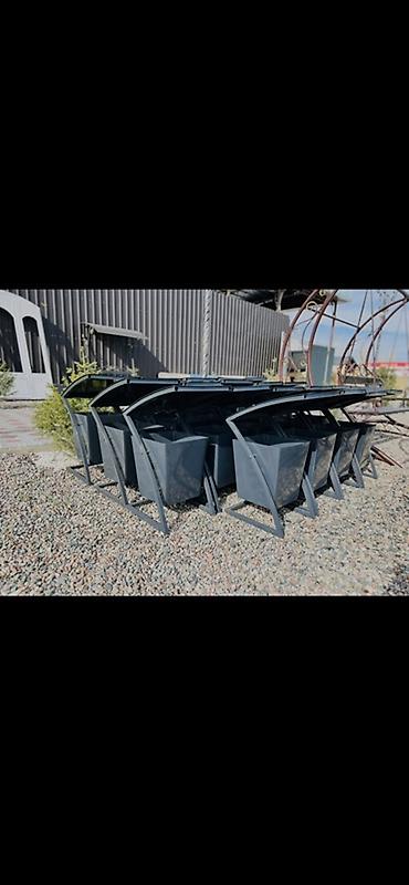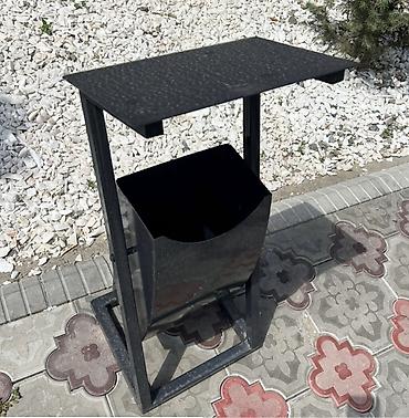 - Конструкция: прочная стальная рама на прямоугольном основании; съёмное ведро-контейнер квадратного сечения; верхний козырёк для защиты от осадков.