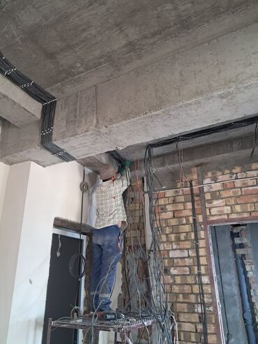 Предлагаются услуги по электромонтажу, включающие прокладку кабеля и установку электропроводки. Работы могут быть выполнены на различных объектах, включая кирпичные и оштукатуренные стены, а также потолки. Обеспечивается аккуратная и надежная прокладка кабельных трасс, готовых к дальнейшему подключению осветительных приборов и розеток. Идеально подходит для первичной установки электросистем в новостройках или при капитальном ремонте.
