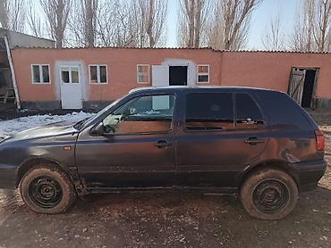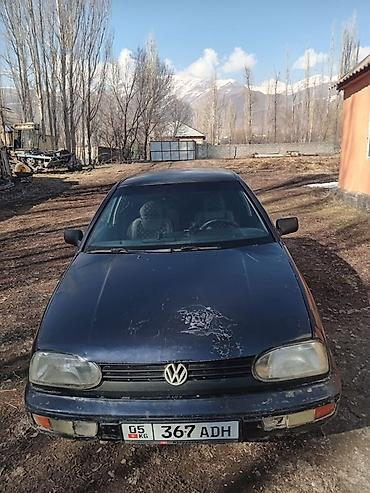 Volkswagen Golf III хэтчбек, 5 дверей, светло‑голубой цвет. Киргизская регистрация (номерной знак виден на фото). Основные особенности: - Кузов хэтчбек, 5 мест - Передний привод - Механическая кор...