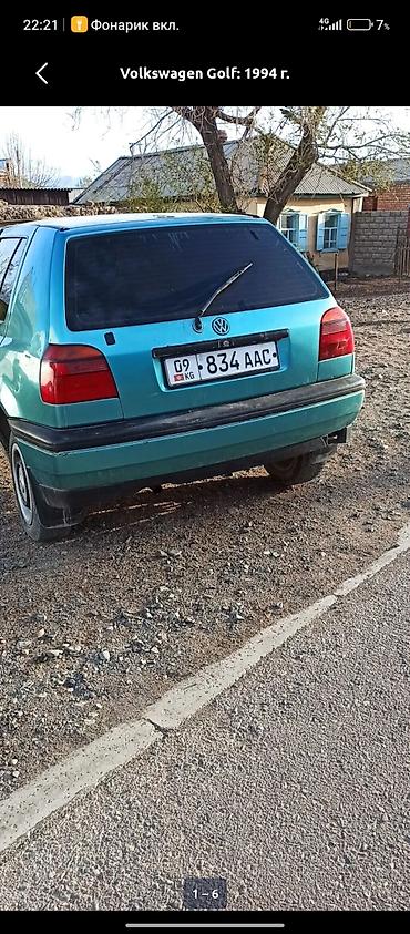Volkswagen Golf, 1994 год выпуска. Хэтчбек 5 дверей, цвет бирюзовый. Киргизские номера 09 KG 834 AAC.