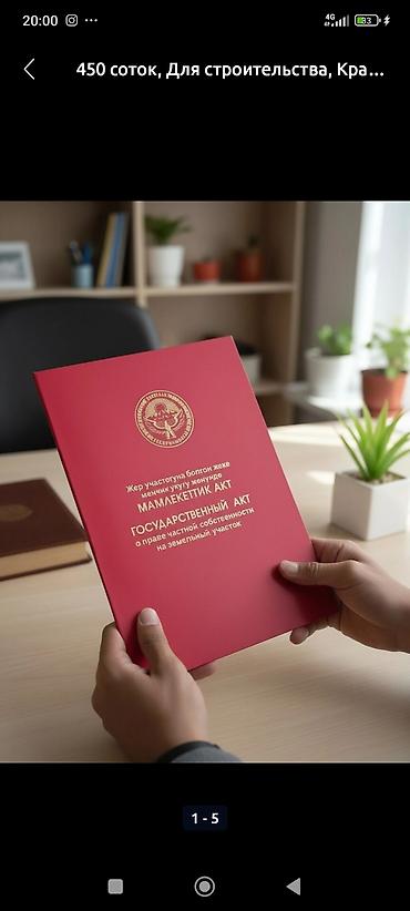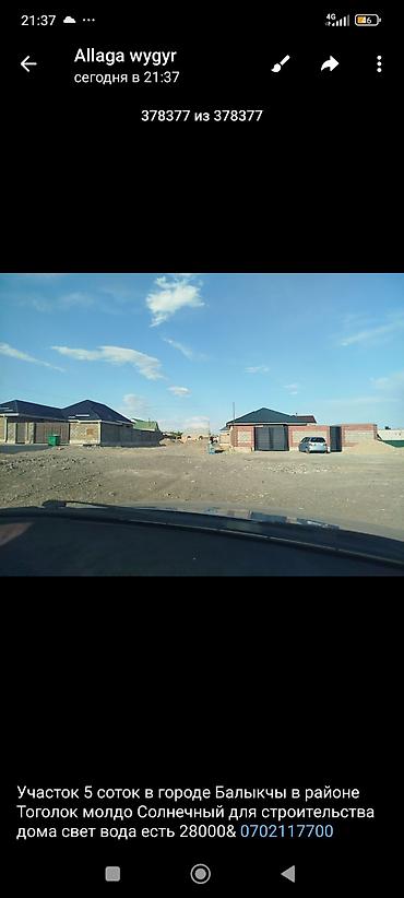 Земельный участок 5 соток для строительства, г. Балыкчы, район Тоголок Молдо, массив «Солнечный». угловой участок + 2 сотки озеленение район хороший