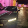 Седан Audi 100 C4 серого цвета с черным нижним обвесом. Автомобиль оснащен рейлингами на крыше, что удобно для перевозки крупногабаритных грузов. Модель имеет классический дизайн, характерный для а...