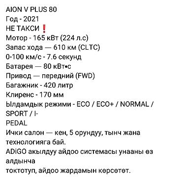 AION V Plus 80 — электрический кроссовер Основные характеристики: -
