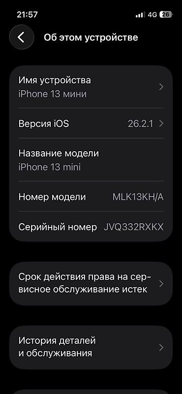 - Модель: iPhone 13 mini (номер модели MLK13KH/A)