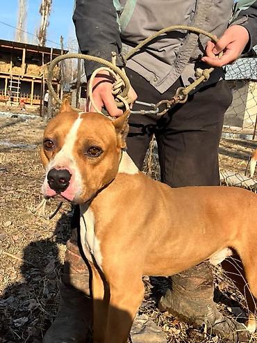 Американский стаффордширский терьер, кобель. Окрас: рыжий с белыми