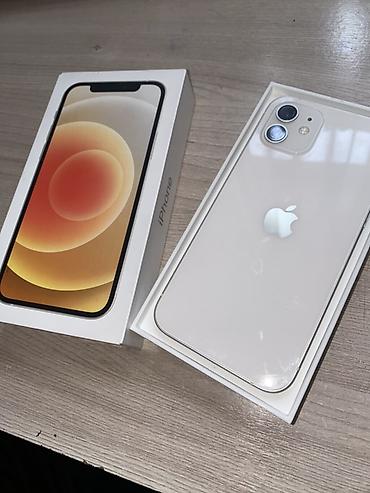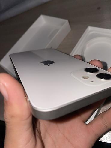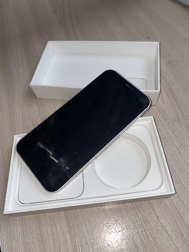 IPhone 12, белый цвет корпуса. Дисплей Super Retina XDR (OLED) с вырезом под Face ID. Плоские алюминиевые грани. Экран работает корректно, сенсор и Face ID активны, Корпус в белом цвете, две камер...