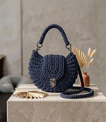 - Модель: компактная полукруглая сумка с объемной фактурной вязкой «ракушка»