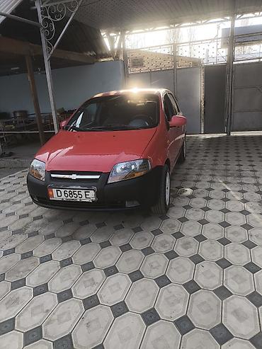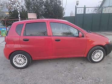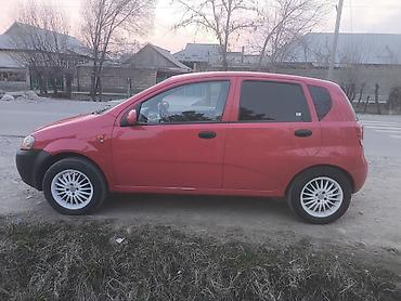 Компактный 5‑дверный хэтчбек Daewoo/Chevrolet Aveo (судя по эмблеме и кузову T200), красный цвет.