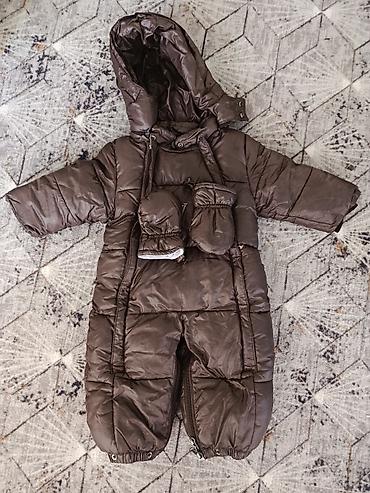 Детский зимний комбинезон-конверт, цвет темно-коричневый.