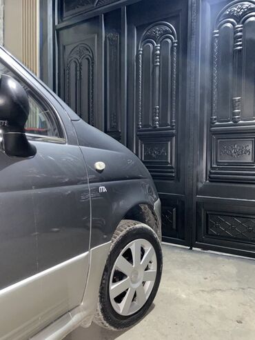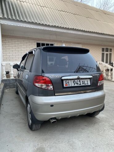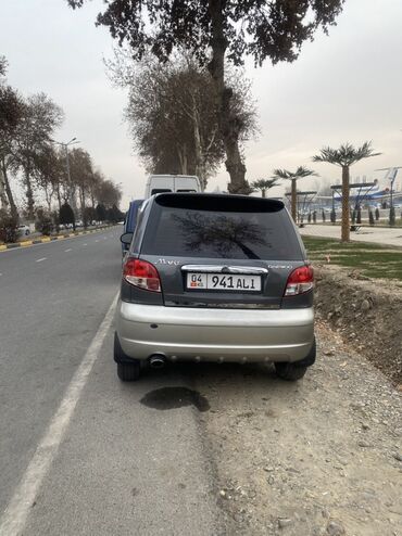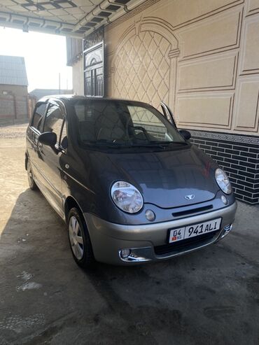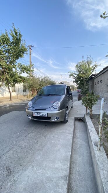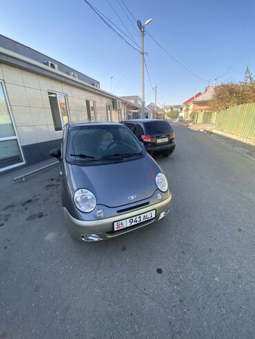 Daewoo Matiz, хэтчбек 5 дверей, серо‑серебристый двухцветный окрас. Киргизские номера (регион 04). Компактный городской автомобиль с экономичным бензиновым двигателем и передним приводом.
