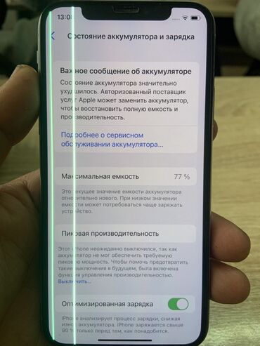 - Аккумулятор: максимальная емкость 77% (уведомление о состоянии аккумулятора на скриншоте), оптимизированная зарядка включена