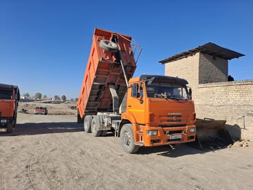 Самосвал КАМАЗ 6x4, оранжевый.