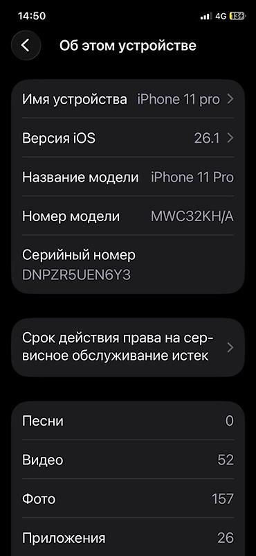 IPhone 11 Pro Max, 64 ГБ, цвет Space Gray. АКБ:91 Характеристики и детали: - Модель: iPhone 11 Pro Max (номер модели MWGJ2LL/A) - iOS: версия 18.5 - Память: 64 ГБ, доступно около 50,33 ГБ - Экран:...