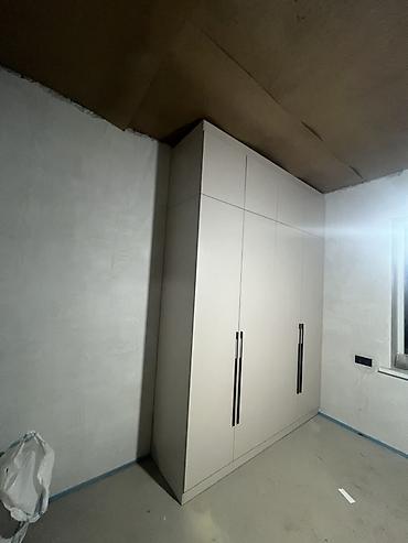 Также изготавливаем шкафы-купе и распашные шкафы-колонны в едином стиле с кухней: высокие корпуса до потолка, широкие металлические ручки, внутренняя компоновка под хранение одежды/техники.