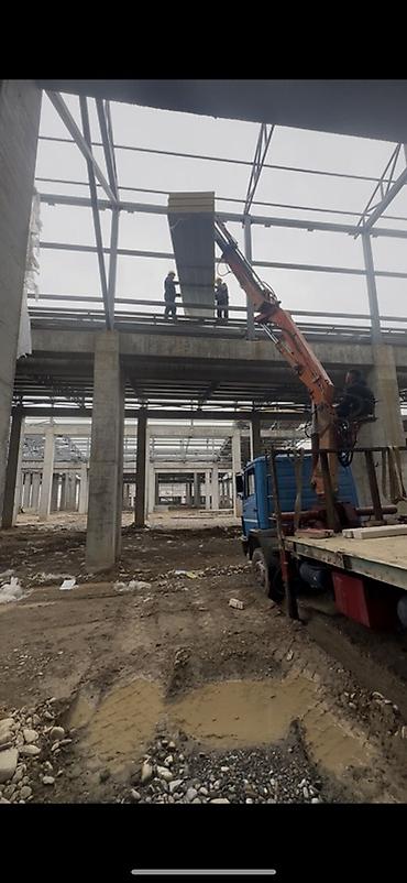 - Кран-манипулятор телескопический, вылет стрелы для подачи на верхние уровни каркаса.
