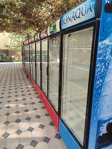 - Вертикальные стеклянные холодильные шкафы с подсветкой лайтбокса (брендовые панели Bonaqua, Coca‑Cola, Fuze Tea и др.). Двери раздвижные/распашные из закалённого стекла, алюминиевые профили, нижнее расположение агрегата с вентиляционными решётками (красные/синие цоколи). Внутри металлические регулируемые полки, статическое или динамическое охлаждение, внутреннее освещение.