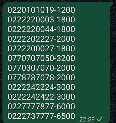 На картинках рядом с некоторыми номерами указаны цены (в условных единицах) — от 1000 до 6500. Номера разных кодов: 050, 055, 070, 075, 077, 0990, 022 и др. Отличный вариант для имиджа и лёгкой узнаваемости.