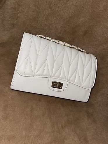 - Белая: стёганая диагональная строчка «ёлочка», компактный прямоугольный корпус, поворотная металлическая застёжка. Ремень‑цепочка с кожаными вставками.