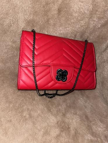 - Красная: кроссбоди со стёжкой «ёлочка», декоративная цветочная фурнитура на клапане, тёмная цепочка‑ремень для ношения через плечо.