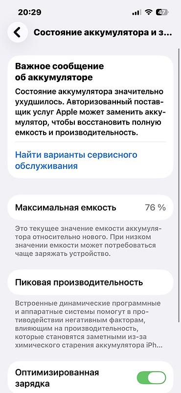 Состояние аккумулятора, %: