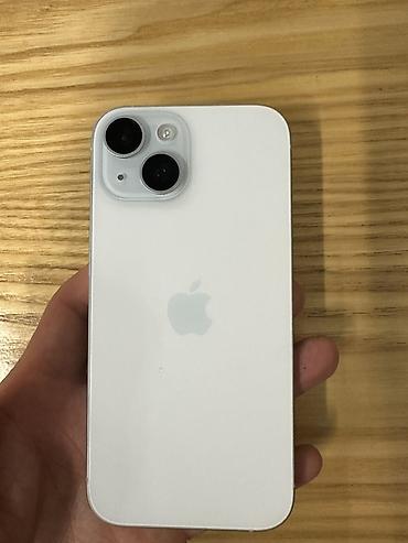 IPhone 15, Б/у, 128 ГБ, Голубой, Зарядное устройство, Чехол, Кабель, 88 %