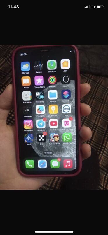 - Память/ПО: iOS (установлены App Store, Локатор, Дом, Книги, iTunes Store, Файлы, Команды, Watch и др.; популярные приложения — Instagram, Telegram, YouTube, WhatsApp, OKX, Subway Surf)