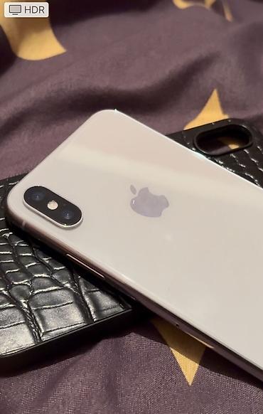 IPhone X, Б/у, 64 ГБ, Серебристый, Чехол, 100 %