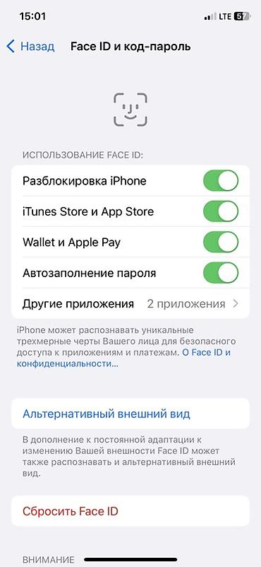 - Разблокировка по лицу работает: Face ID активен для разблокировки, i