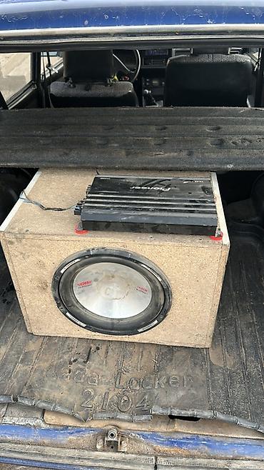 - Комплектность по фото: сабвуфер в коробе, усилитель, проводка, ремешки/крепления.