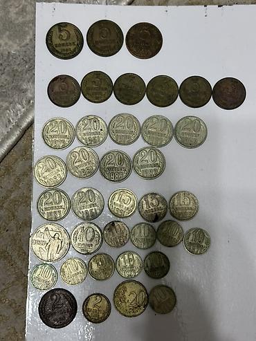 - СССР: 2, 3, 5, 10, 15, 20 копеек разных годов выпуска (встречаются 1949, 1951, 1952, 1975, 1979, 1981, 1982, 1983 и др.). Есть юбилейная «СССР» с изображением фигуры.