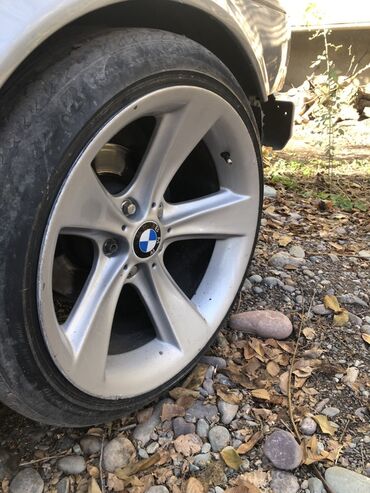 Комплект из 4 литых дисков BMW. - Диаметр: ориентировочно R17–R18 (пятиспицевые, фирменные колпачки с эмблемой BMW) - Посадочные отверстия: 5 болтов (5x?) — под большинство моделей BMW с 5-луночно...