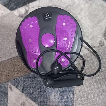 - Как использовать: встаньте на диск ногами, удерживайте эспандеры и выполняйте вращательные движения корпуса; регулируйте нагрузку скоростью вращения и амплитудой, а также степенью натяжения эспандеров.