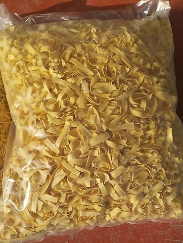 Домашняя лапша в ассортименте, фасованная в прозрачные пакеты.