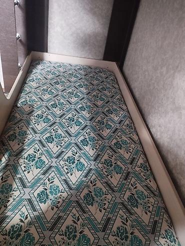 - Спальные места: прямоугольные ложа с высокими бортами; в комплекте два односпальных матраса с чехлами с бирюзово-серым геометрическим/цветочным рисунком.