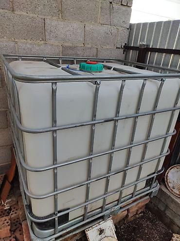 Пластиковые кубовые ёмкости (IBC-контейнеры) в металлической обрешётке. Характеристики: - Объём: примерно 1000 л - Материал бака: пищевой/технический полиэтилен (HDPE) - Усиленная оцинкованная кле...